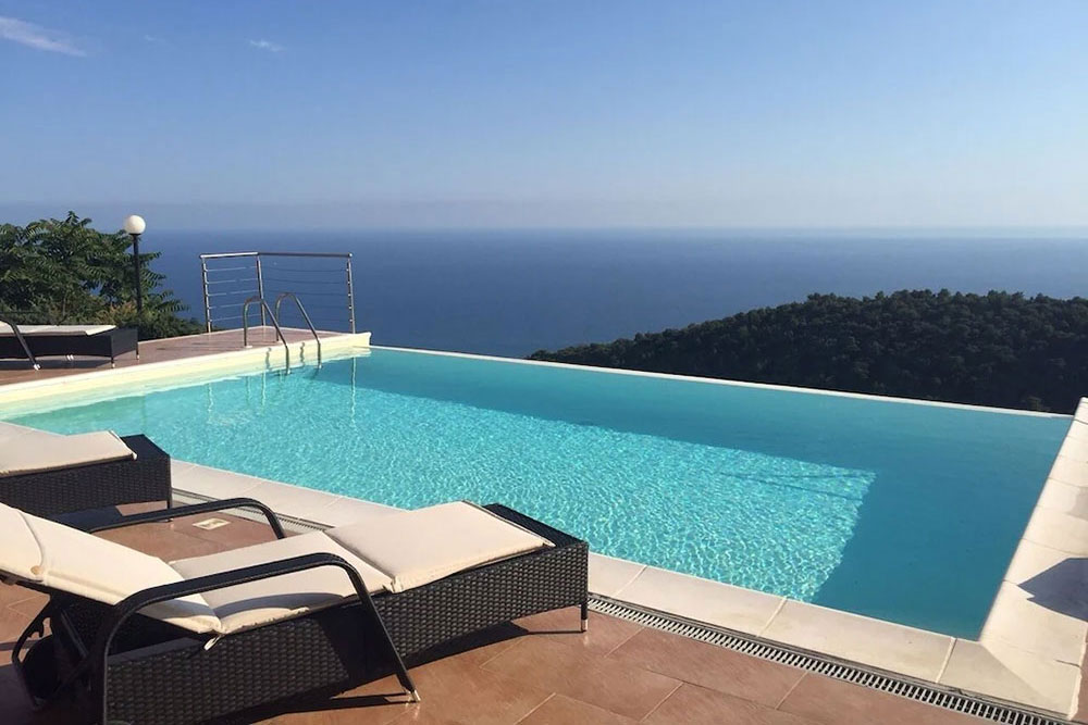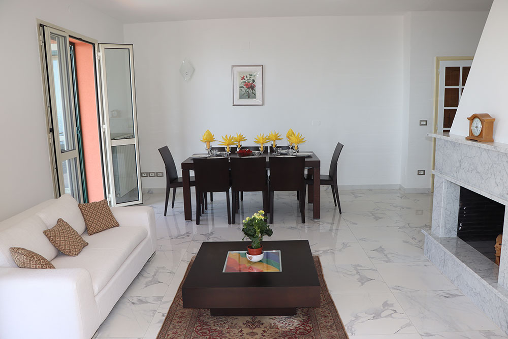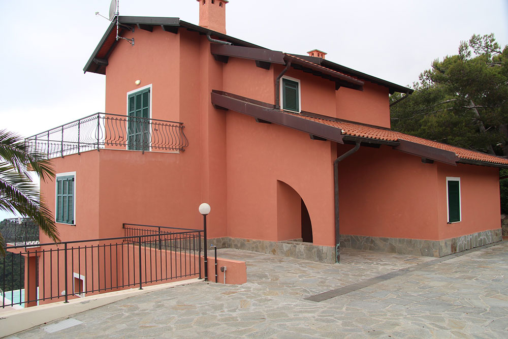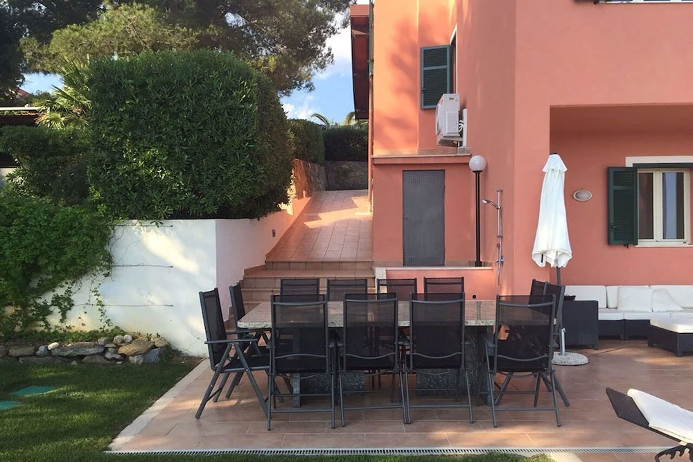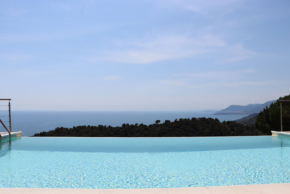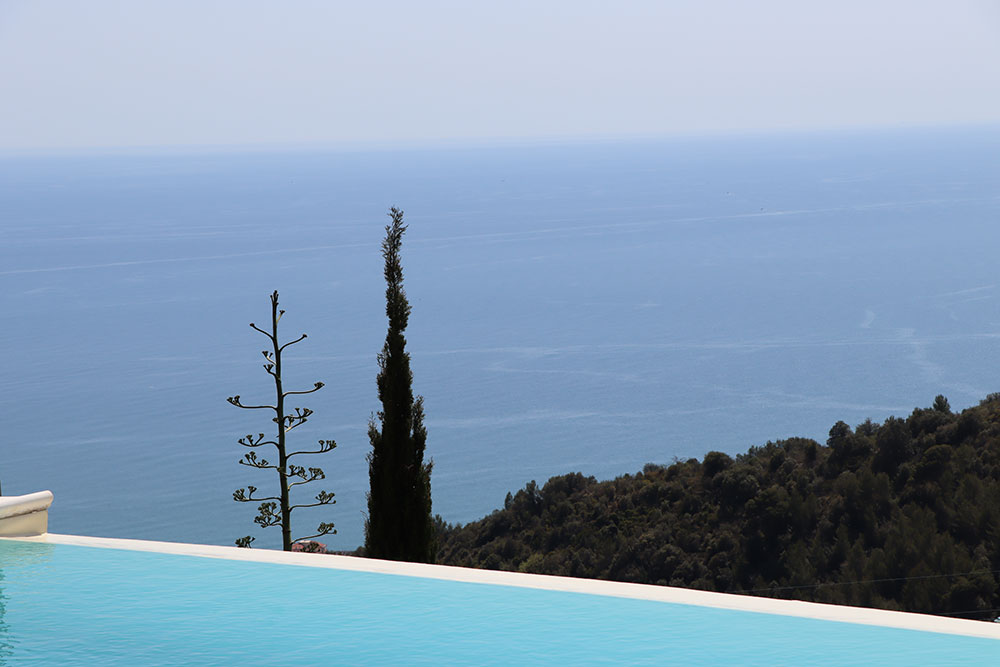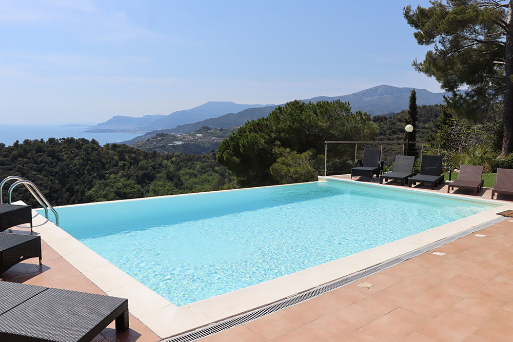 Gli spazi esterni sono stati progettati per abbracciare appieno lo stile di vita della Riviera italiana. Una splendida piscina a sfioro è posizionata in modo perfetto per catturare la vista panoramica, mentre l’ampia terrazza — dotata di un grande tavolo da pranzo in granito — crea uno spazio ideale per intrattenere gli ospiti, rilassarsi e godersi lunghe serate all’aperto.