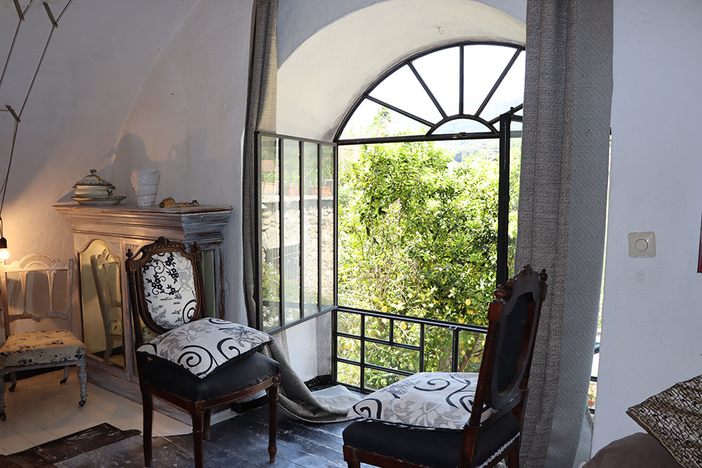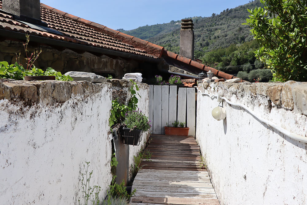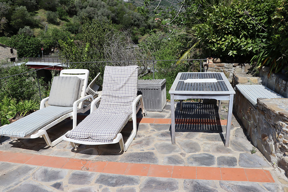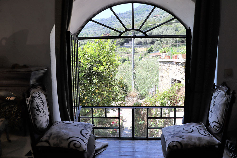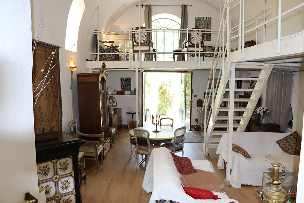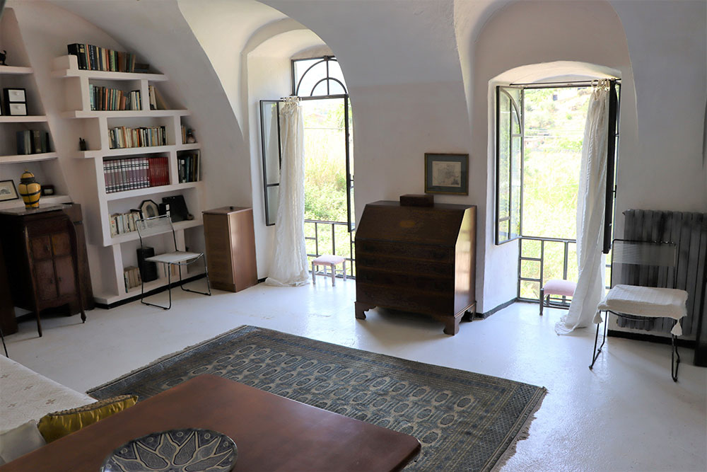 Een opvallend kenmerk is de indrukwekkende woonkamer met hoge plafonds, die nog meer tot zijn recht komt door de toevoeging van een mezzanine. Van hieruit kunt u genieten van een prachtig uitzicht over de nabijgelegen rivier en de omliggende Ligurische heuvels.