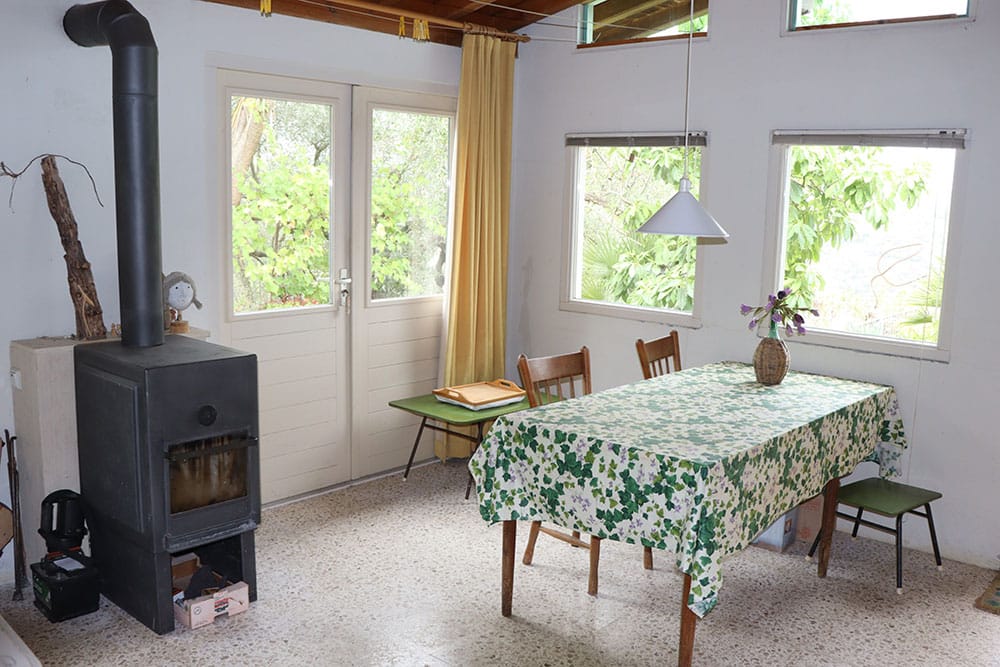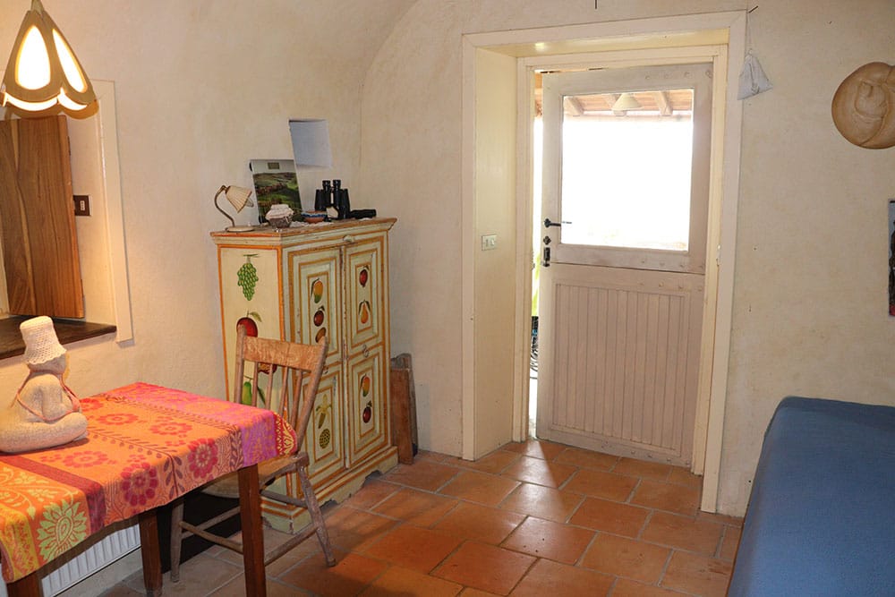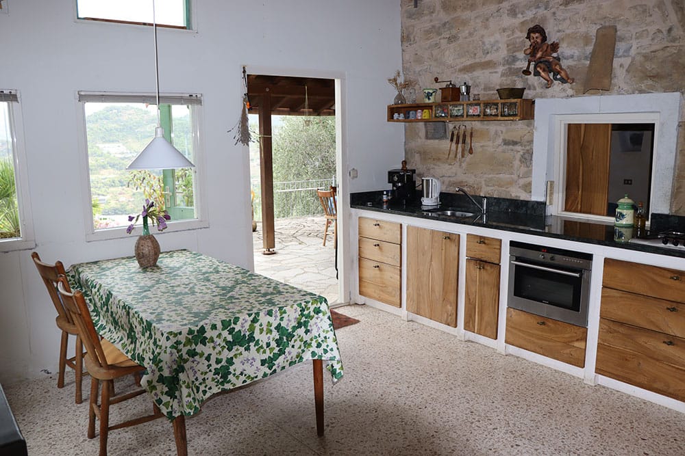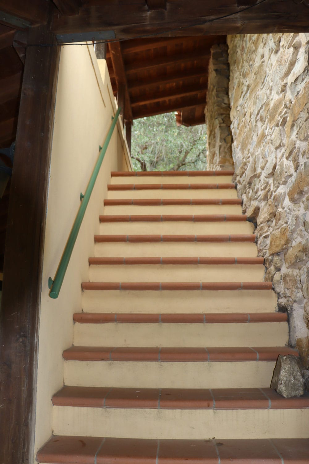 The ground floor consists of a spacious kitchen-diner, whose cupboard doors are made from the property’s own olive wood – a unique detail that gives the house a warm, authentic atmosphere. From the kitchen, you step directly onto the large, partially covered terrace, where you can enjoy La Dolce Vita Italiana and the panoramic view over the valley in complete tranquillity.