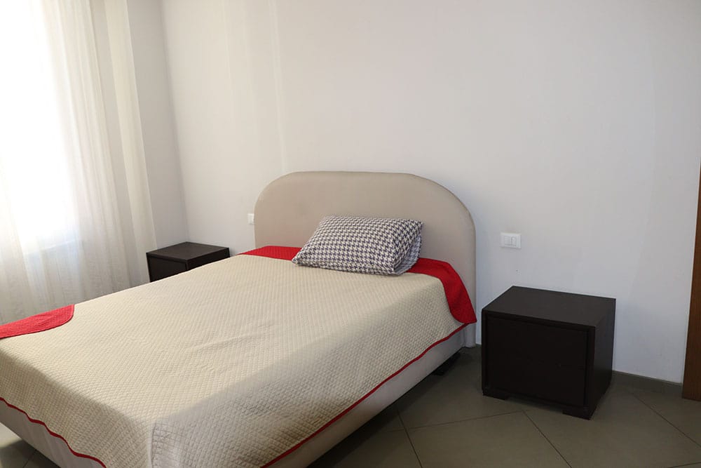 There are two spacious bedrooms, a large bathroom with bathtub and a daily bathroom with toilet. Thanks to the double glazing, the apartment is pleasantly quiet and energy efficient.